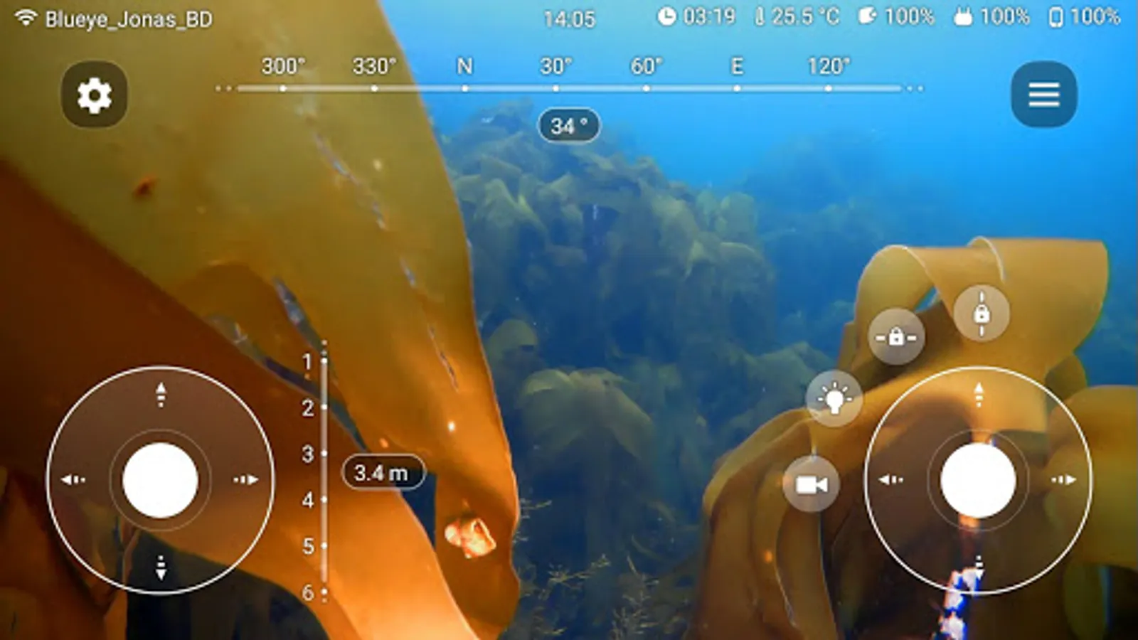 The Blueye app lets you control your Pioneer underwater drone from your Android. You can either use the touch interface to control the drone, or you can connect a wireless game controller.