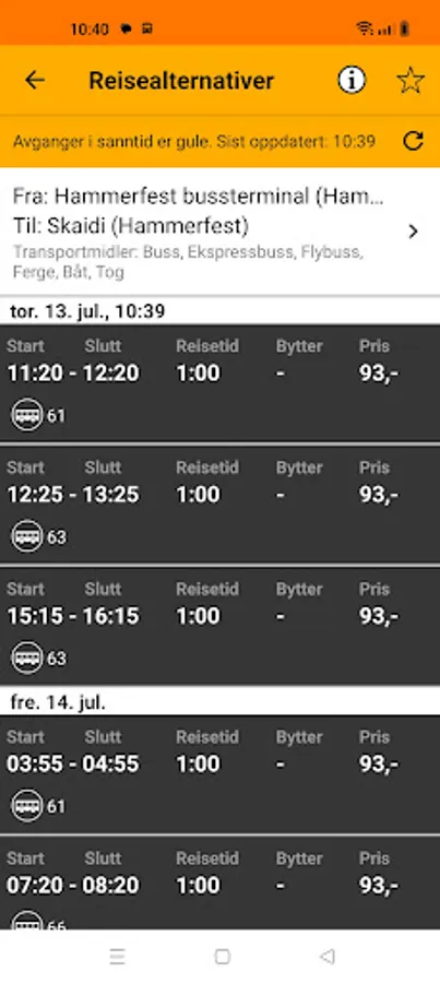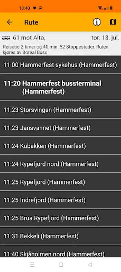 You get information about service disruptions, as well as departure times for bus, boat and ferry.