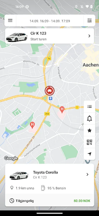 With Circle K Car Sharing, you can easily rent a car using your phone. We've made it easy for you by using your phone to open and lock the car so you don't have to use a key. You can easily find the cars at a Circle K station near you. With us, you can rent both station wagons and vans.