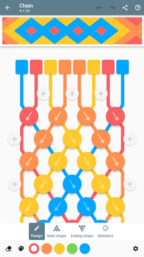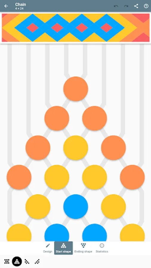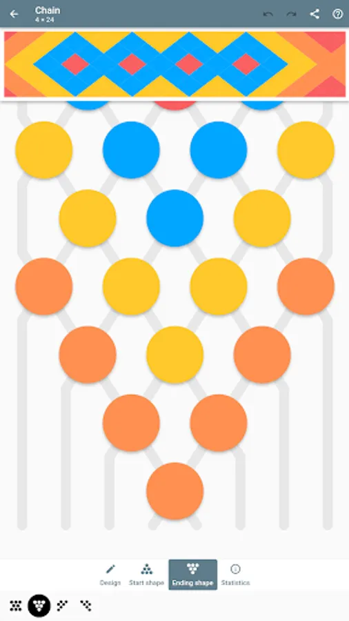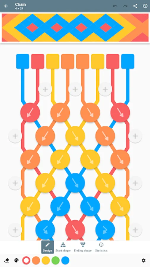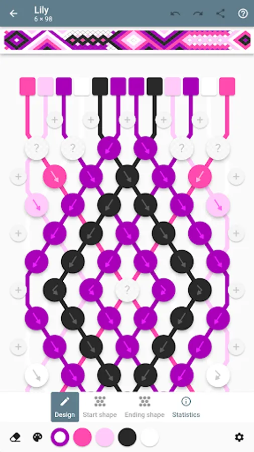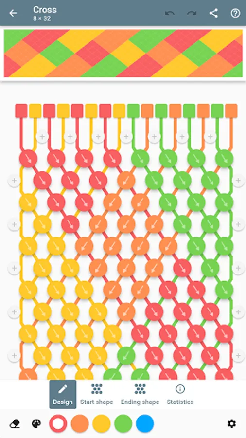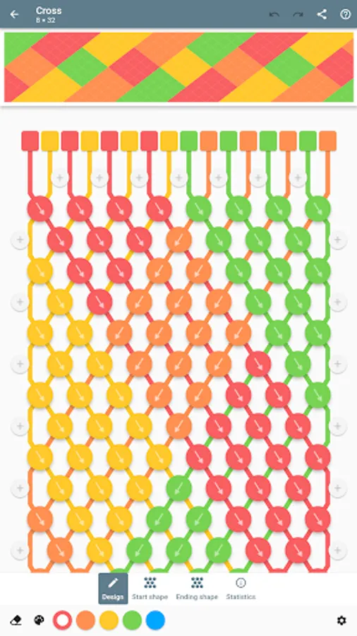 You don't need to think about knot types, threads and directions - just color the knots, and the application does the magic, it generates the pattern for you.
