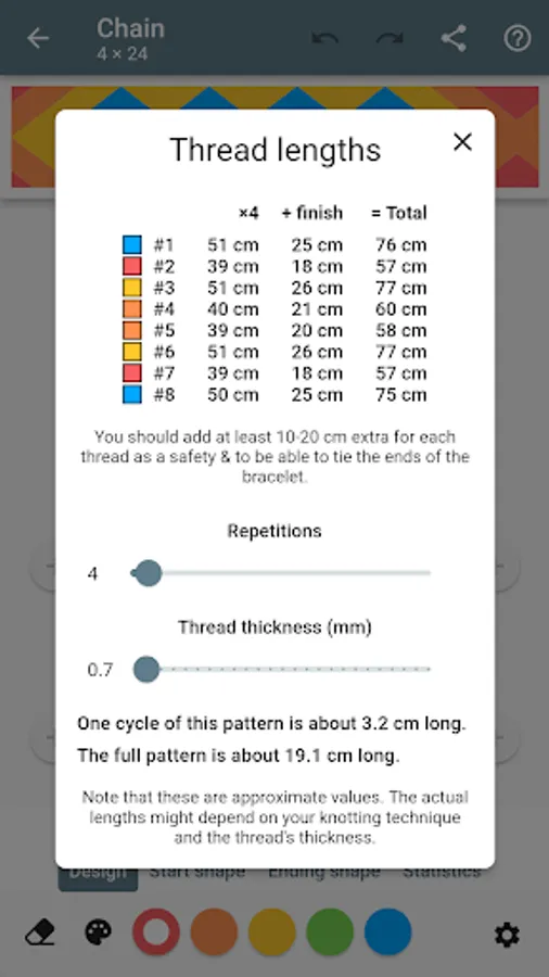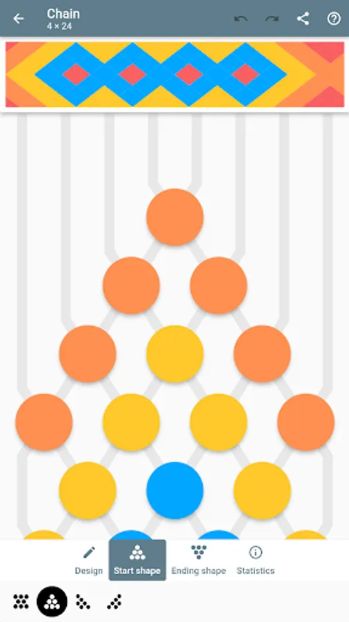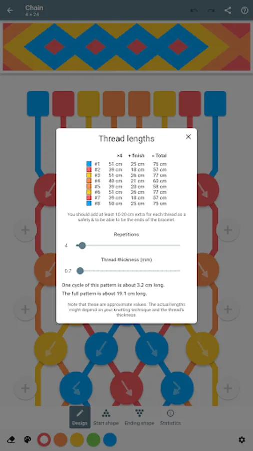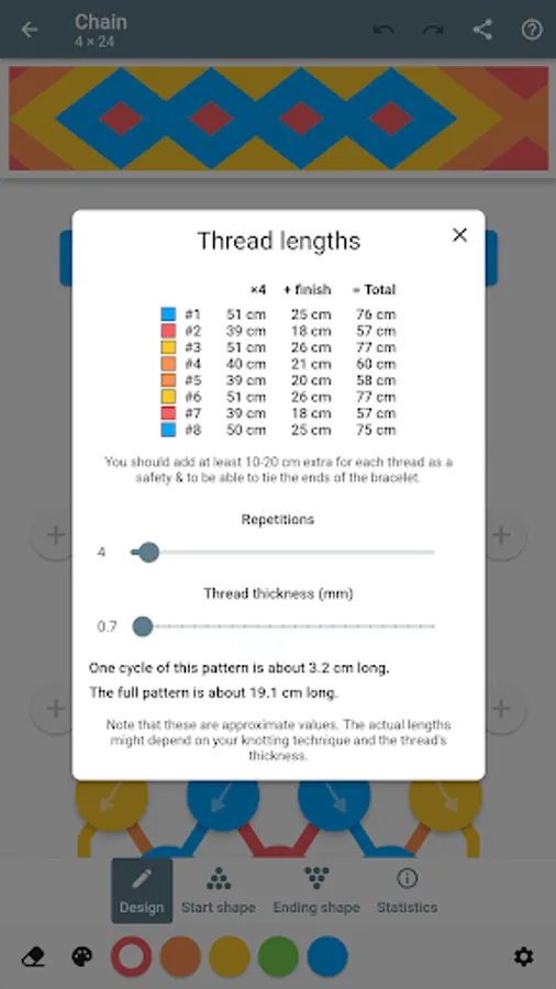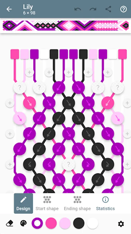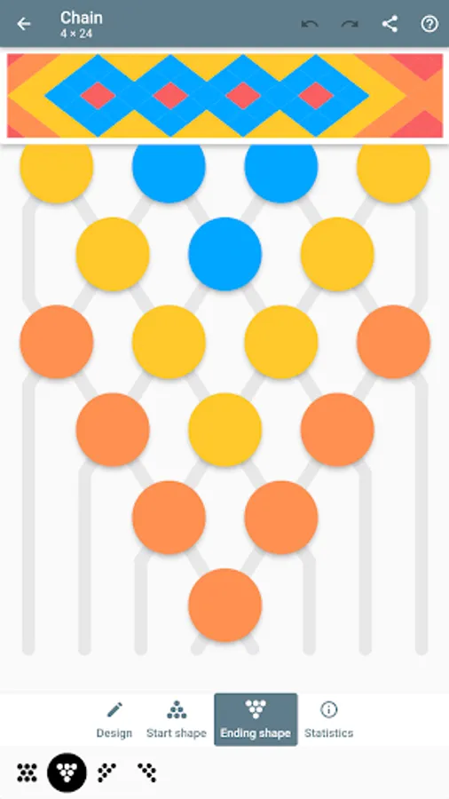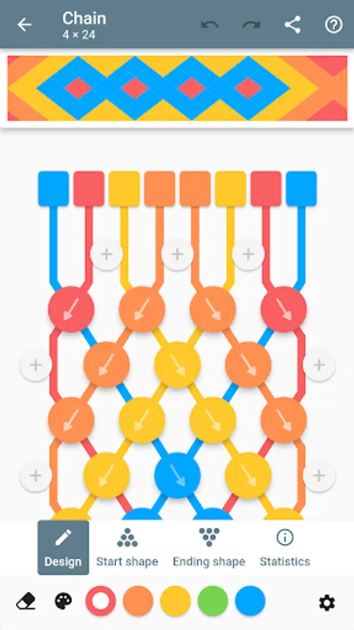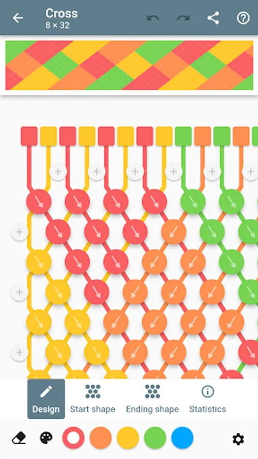 You don't need to think about knot types, threads and directions - just color the knots, and the application does the magic, it generates the pattern for you.