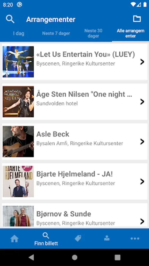 Call Ticket allows you to buy tickets for the event are available through Ringbillett.no