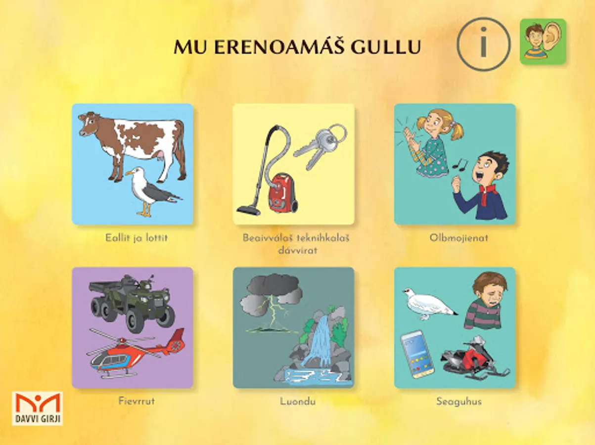 Dát applikašuvdna galgá veahkkin ovdánahttit máná guldalanvuogi. Applikašuvnnas mánná oahppá earuhit jienaid ja čatnat jienaid govaide, muhto maiddái hárjehallat muittu.