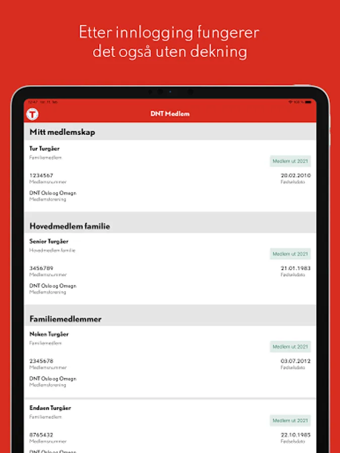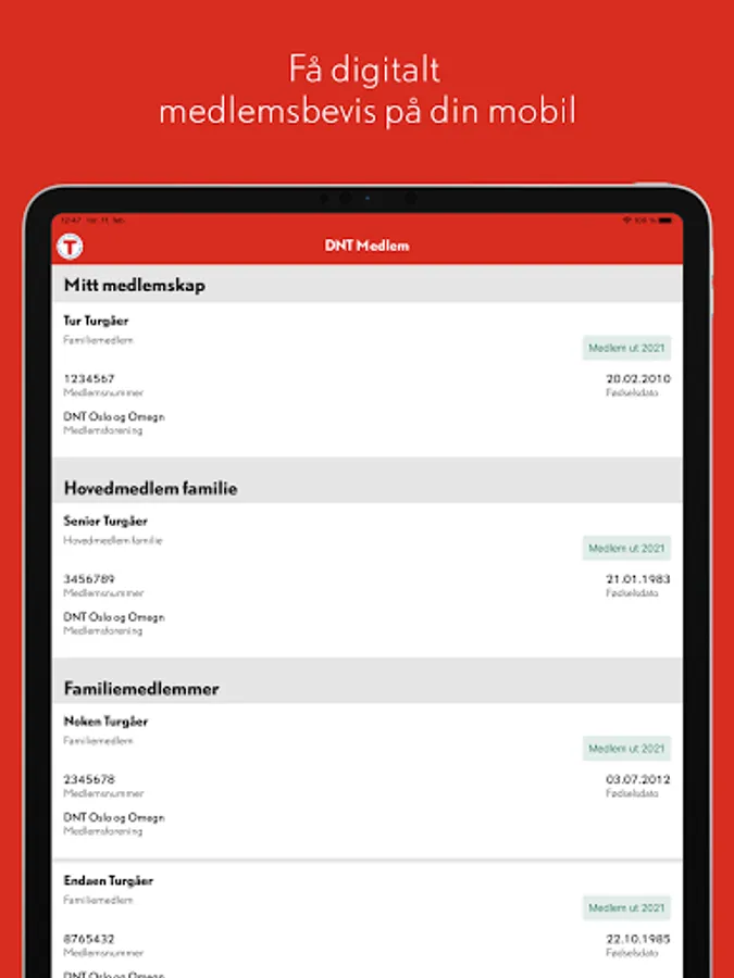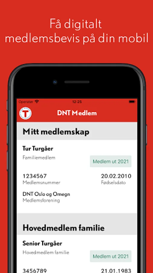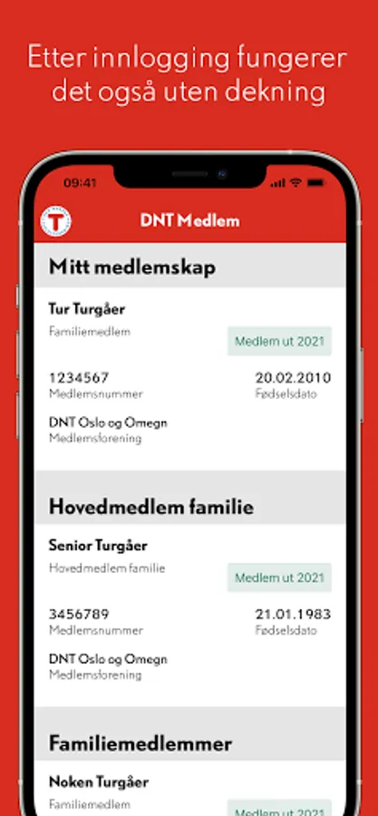 Are you a member of the Norwegian Tourist Association (DNT)? Then you can download this app and take your digital membership card with you when you travel. Any household members associated with your membership will also be displayed. After logging in, the app also works without mobile coverage.