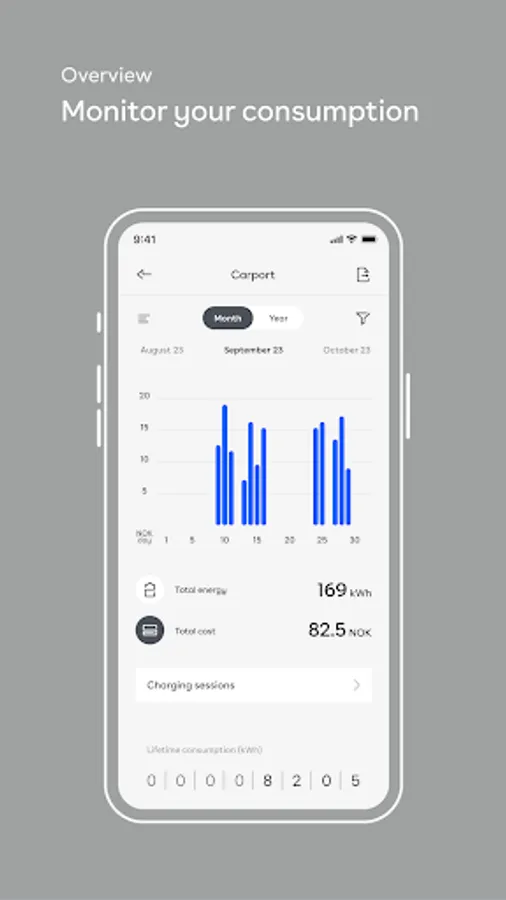 With the Easee app, you have insight into how much you have charged for each month, how much power you are currently charging with and how much you have topped up on the battery of your electric vehicle (EV). In addition, you can monitor the distribution of power on each phase. In addition, you can constantly check the status of the charger, whether the car is connected or not and whether charging is in progress.