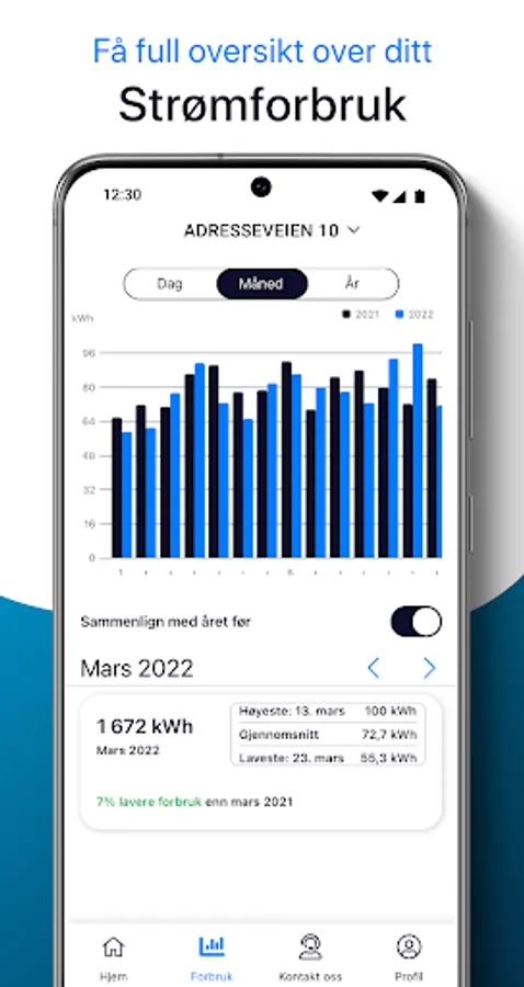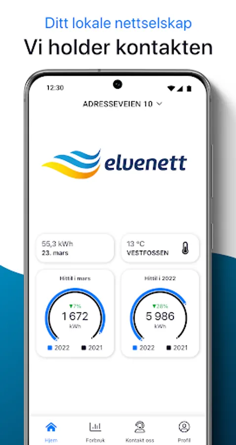 The Elvenett app gives you full overview of your customer relationship. You get an overview of your power consumption and can easily compare current and historical consumption. If you have several subscriptions and meters, all of them are available in the app. You will also find an overview of your invoices and their payment status.