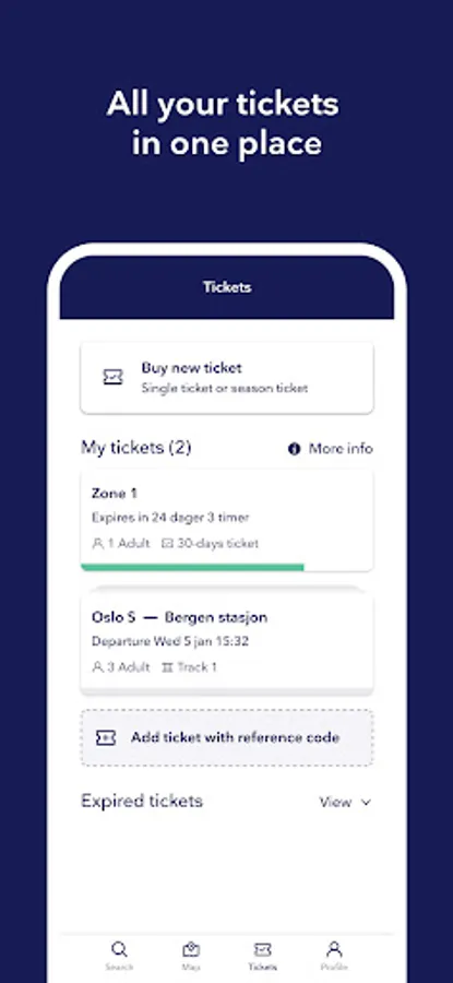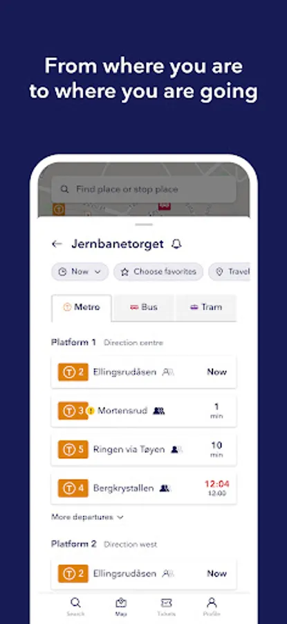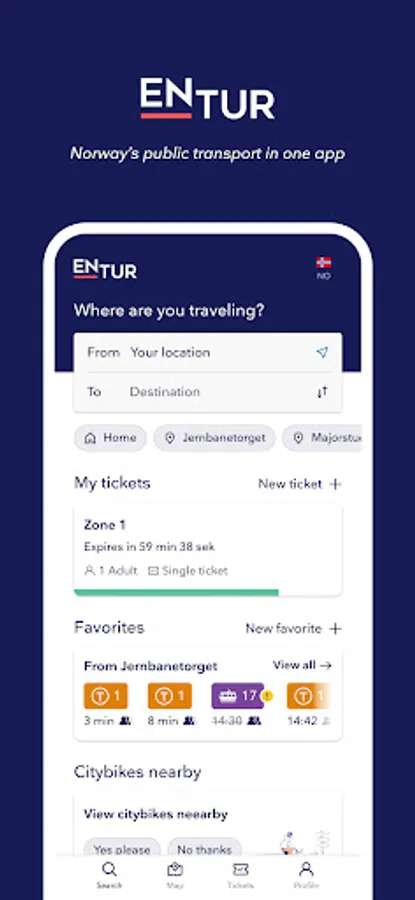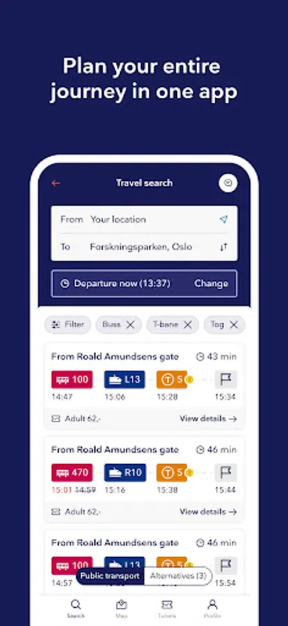 The app makes it easy for you to travel with public transport wherever you are in Norway.