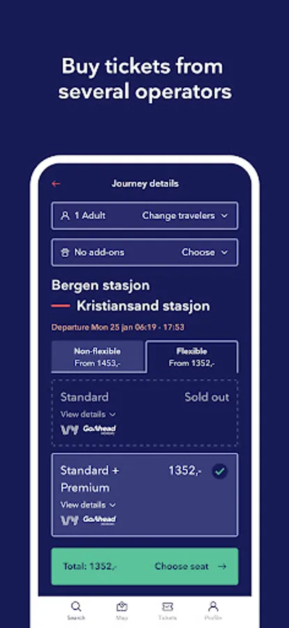 The app is in constant development and is not a finished product. We are now selling a few tickets to public transport, but our goal is that you can plan a trip with several travel providers - and only press "buy ticket" once to get all you need.