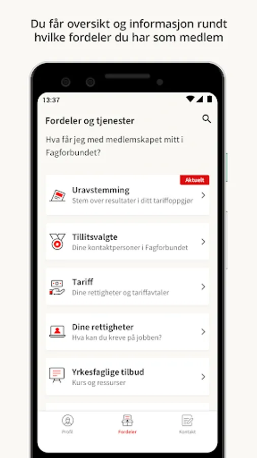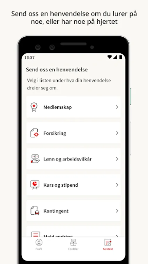 You get easy and clear access to details about your membership. See the benefits and agreements you have as a member and manage which agreements are included in your membership. The app can be used as a reference work to gain insight into what rights one has in working life. If you have any questions or have something on your mind, you can send us an inquiry. Inquiries are categorized by topic. It makes it easier and faster to get answers.