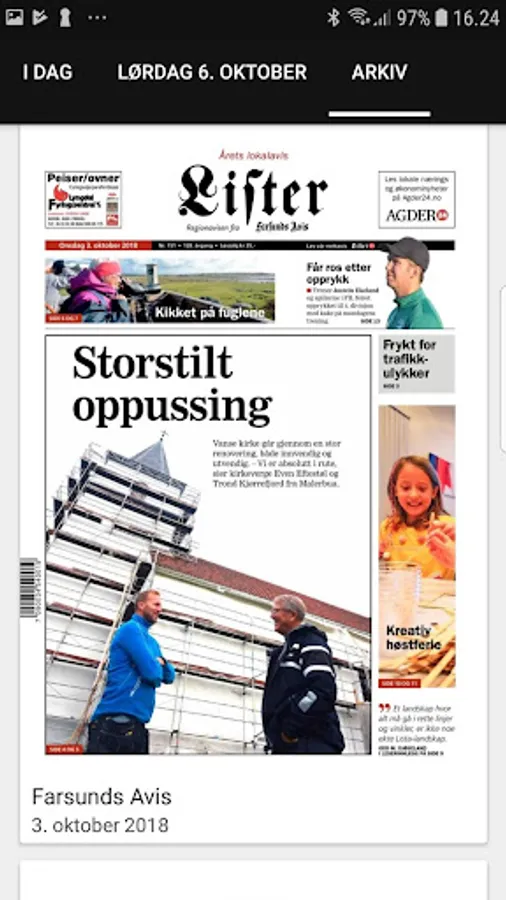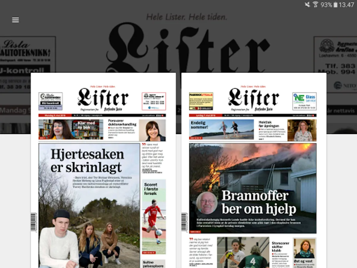Lister ePaper is our newspaper in readable digital format. Lister comes out on paper Monday, Wednesday, Thursday and Saturday, and provides small and big news, features and new material from Farsund, Lyngdal, Flekkefjord, Kvinesdal and Hægebostad. Lister ePaper are for Android and iOS (iPad, iPhone and iPod Touch). Also check online newspaper lister24.no