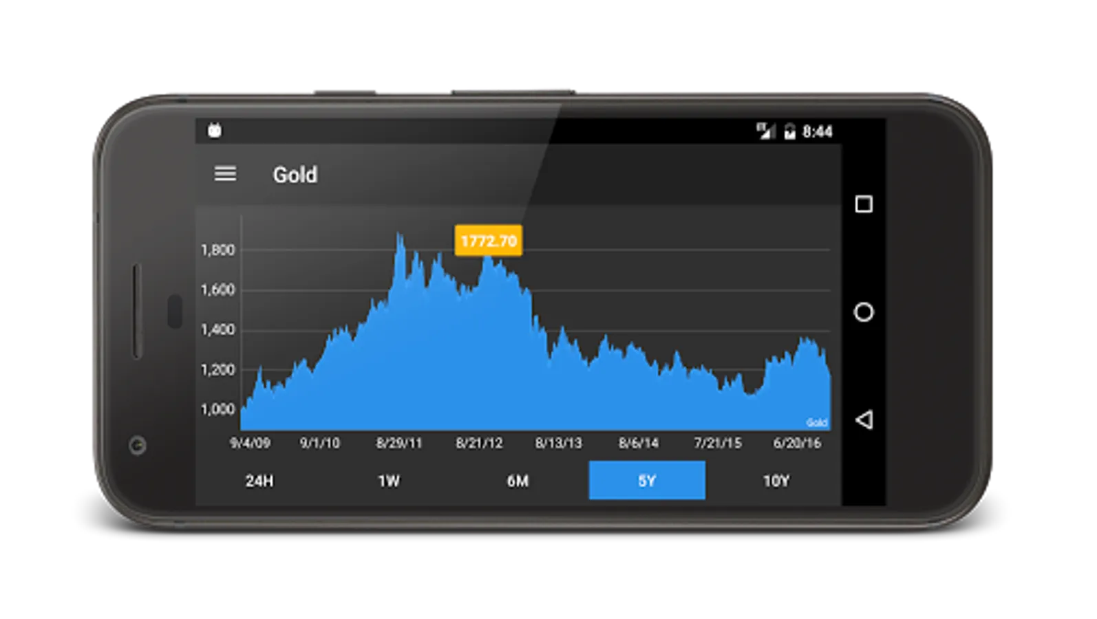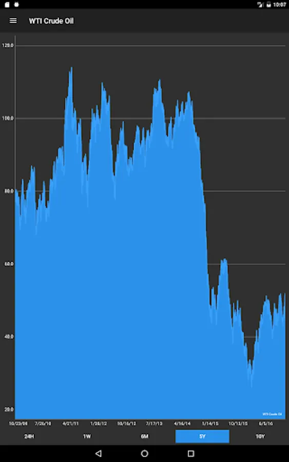 - Interactive Charts in portrait and landscape mode with zoom, range from: last 24 hours, 7 days, 6 months, 5 years and 10 years.