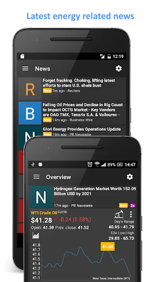 - News feed with energy related news.