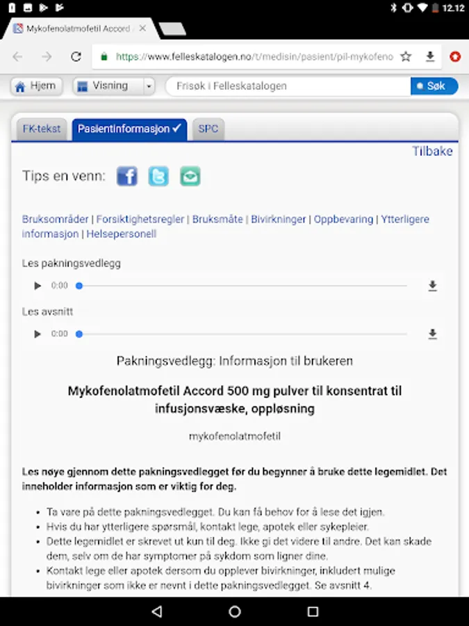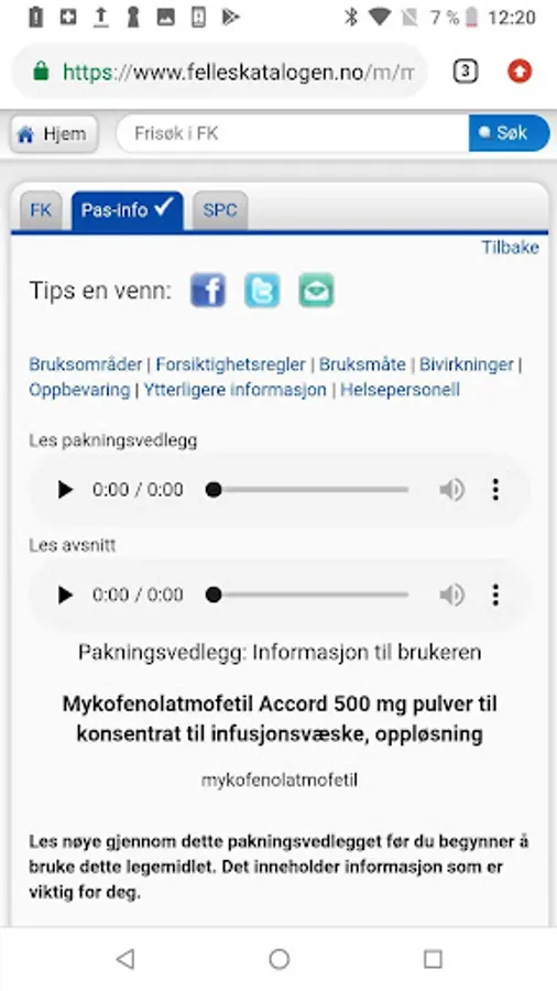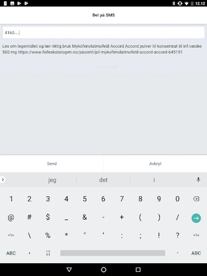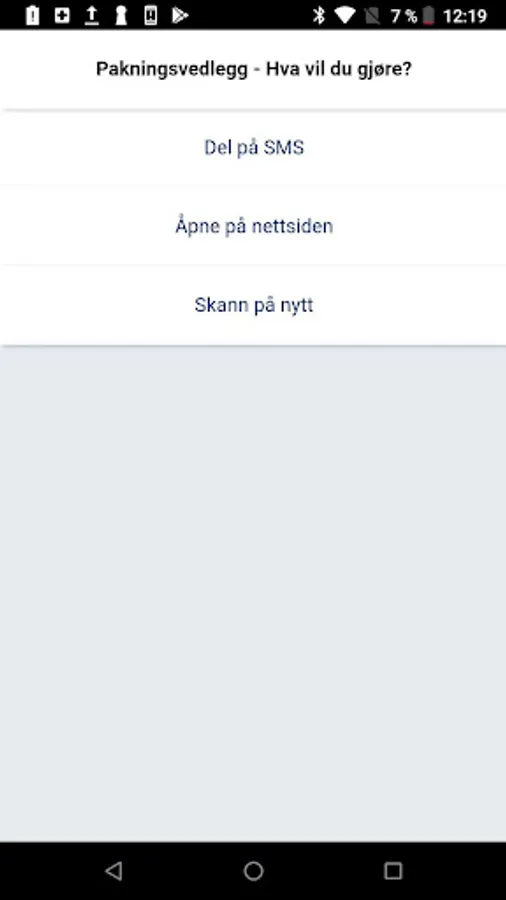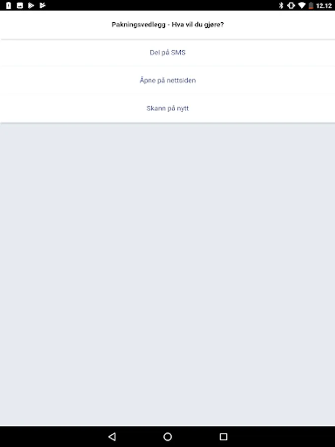 Scan the code - choose to see the package leaflet at www.felleskatalogen.no or choose to share the information about the medicine via SMS.