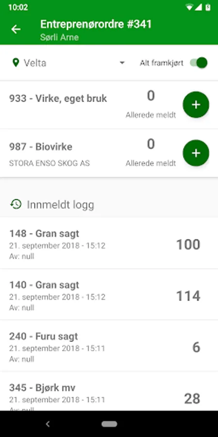 Appen krever egen bruker i virkeshandelssystemet, ta kontakt med din skogbruksleder for dette.