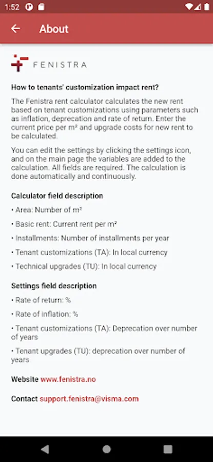 The Fenistra rent calculator calculates the new rent based on tenant customizations using parameters such as inflation, depreciation and rate of return. Enter the current price per m² and upgrade costs for the new rent to be calculated.