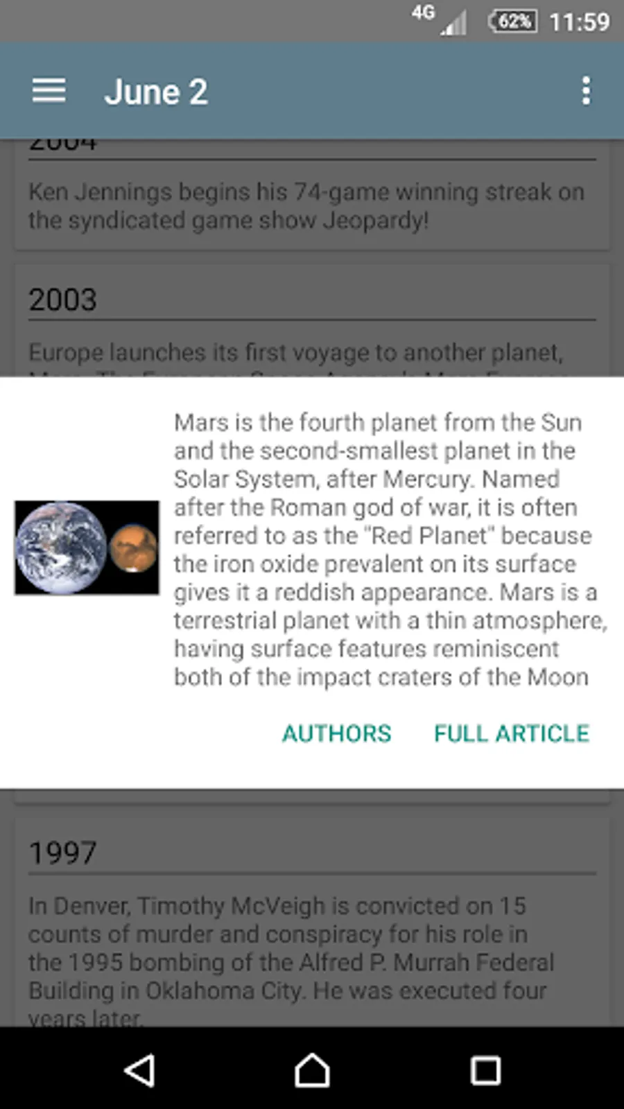 • android.permission.INTERNET - To download the events from Wikipedia.