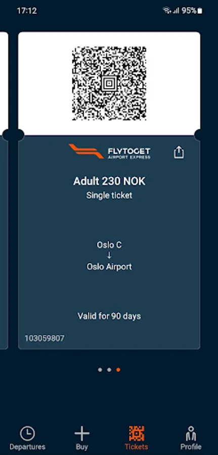 The ticket is scanned to pass through our barriers when departing from or when arriving to Oslo Airport.