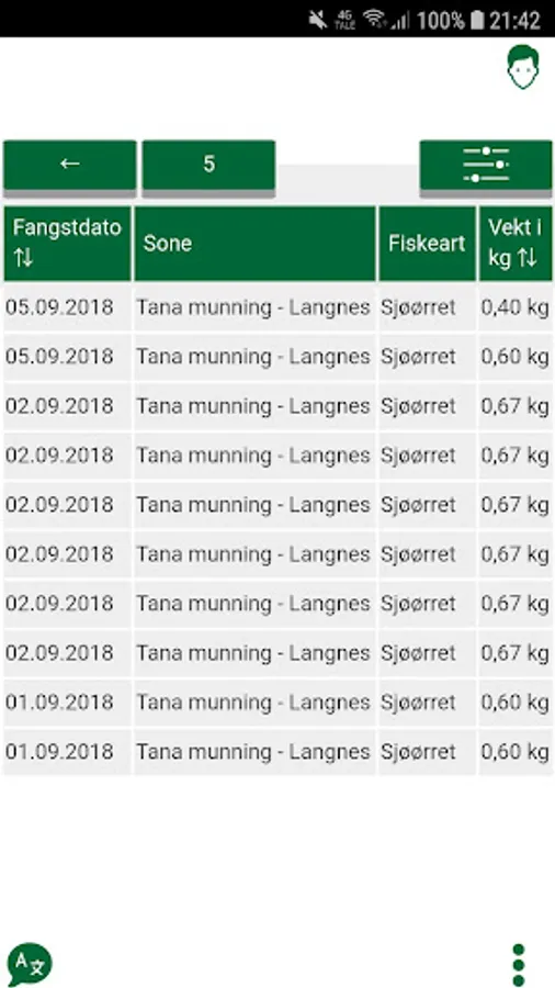 * View catch statistics with sorting for zones, fish species, fishing gear and weight.