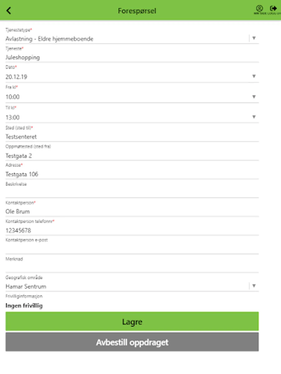 In FRIDA Omsorg, employees in the municipality can request voluntary organizations and Volunteer Centers for voluntary services on behalf of their users. All employees in a municipal unit will have a common calendar listing the status of all requests they have on behalf of their users. The solution is fully integrated with FRIDA +.