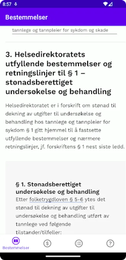 - The Norwegian Directorate of Health's supplementary provisions and guidelines to § 1 - eligible examination and treatment