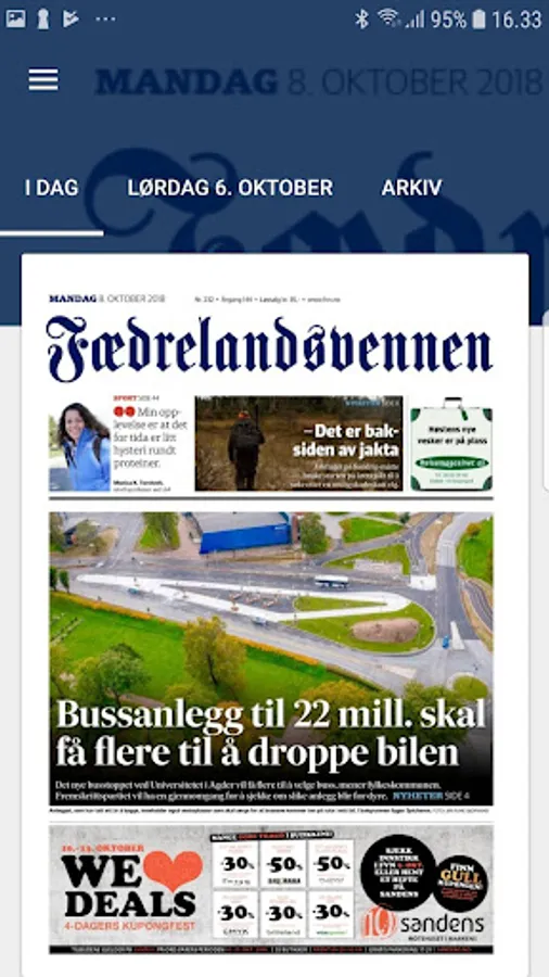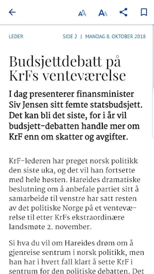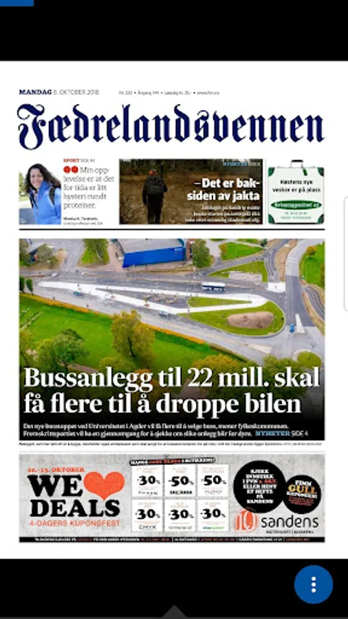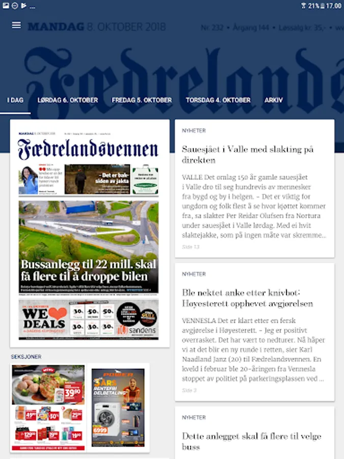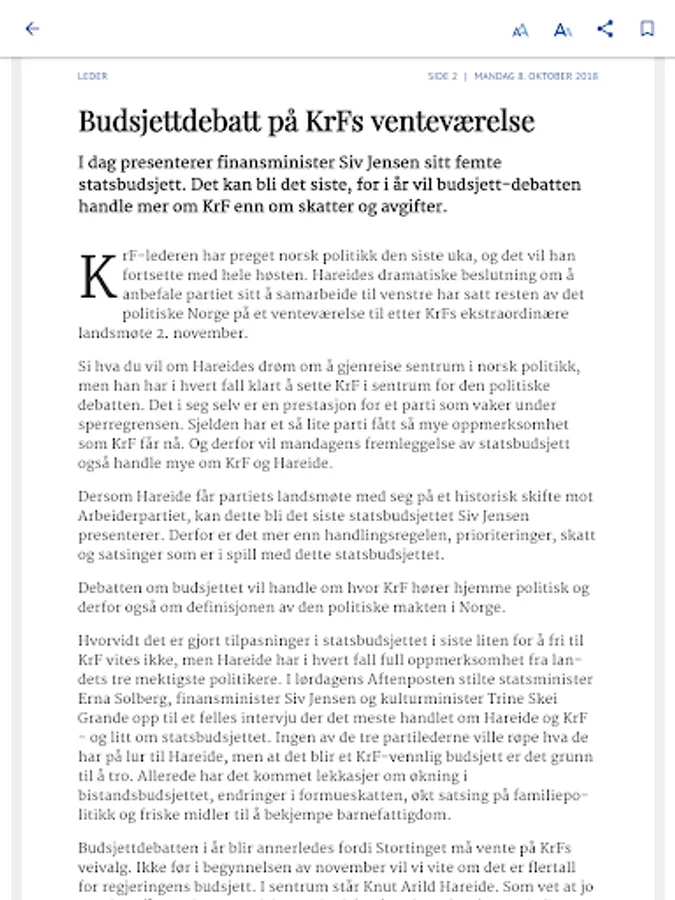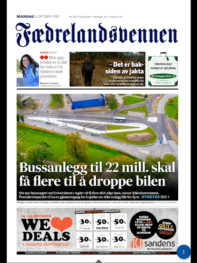 Read Fædrelandsvennen on a tablet or phone. You can read the text either directly from the sides or in the article view.