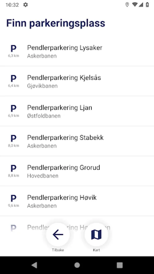 Car Parking: This app allows you as rail passengers to buy a commuter parking at train stations in Norway. You can also navigate to a commuter parking space. Commuter parking assumes that you have a valid season ticket for the train.