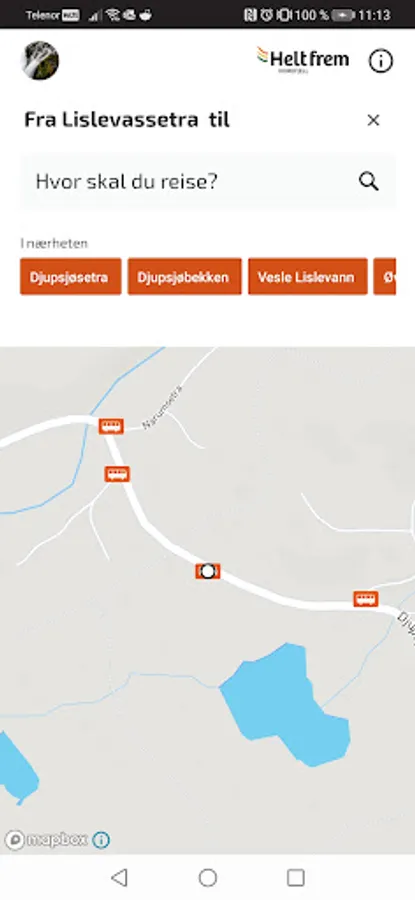 With the "Helt Frem Norefjell" app, you can easily book a ticket to the nearest stop.