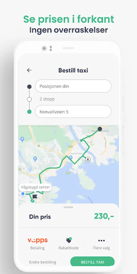 We operate with a fixed price that is easily visible in the booking process, so you will avoid unpleasant surprises at the end of the trip. You can pay by bank card or Vipps.