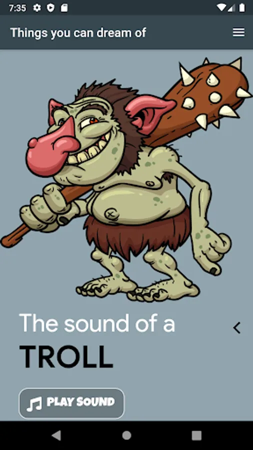 For the youngest. Swipe through cartoon illustrations of animals and things that makes a sound, and listen to it. Childish design with easy navigation.