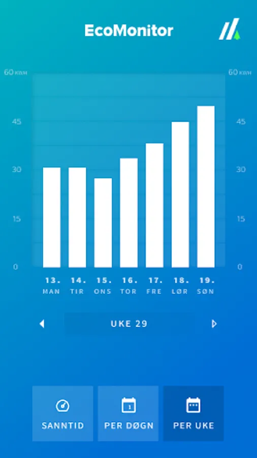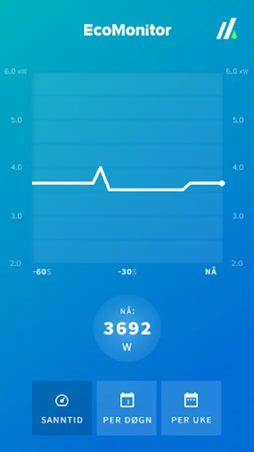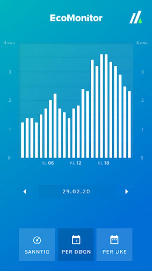 EcoMonitor is a user-friendly app with simple charts and layouts. In daily use, we arrange for a seamless alternation between real-time viewing (live and last-minute development), 24-hour viewing (consumption divided by hour), and weekly viewing (consumption divided by days). For each of the history graphs, you can also easily scroll back in time to see all the developments since you connected the device.