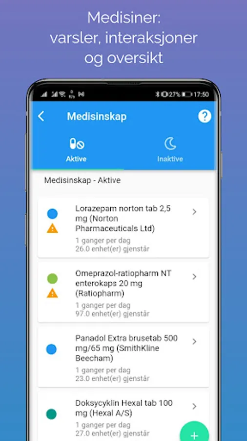 • MEDISINHISTORIE: Oversikt over alle medisiner du har tatt (1 gratis).