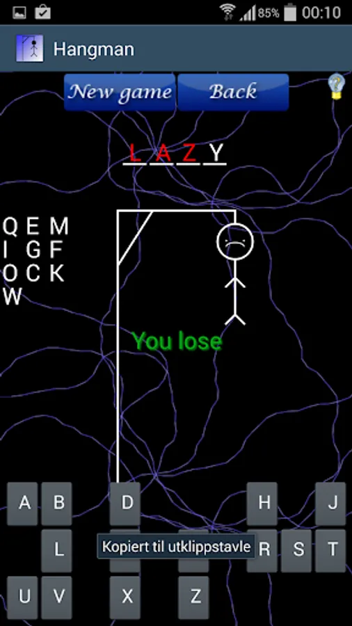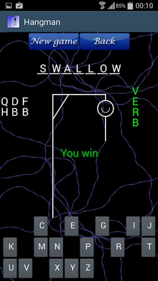 If all parts of the gallow is displayed, you hang and the game is lost.