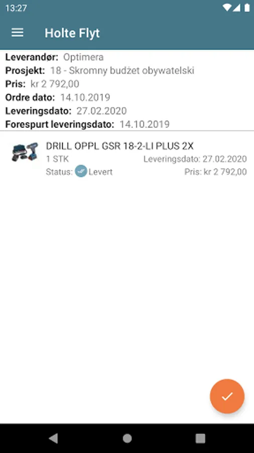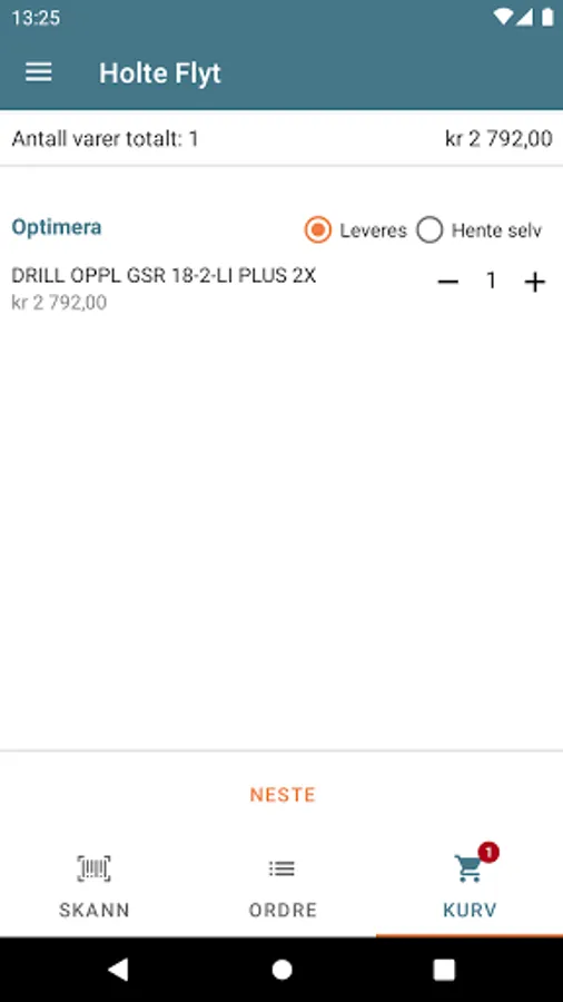 Holte Flyt is your 3-1 app that can scan item numbers, make digital item orders and make a digital item receipt, all on the construction site. With notices against NOBB, you have full control over information related to the items you want to order. Holte Flyt is part of Holte Varehandel which you will find in our web solution.
