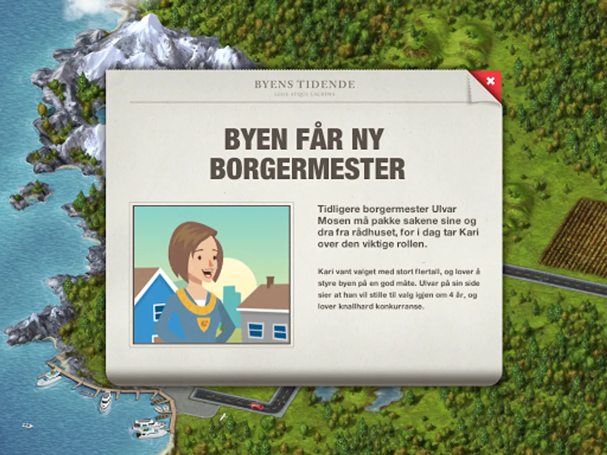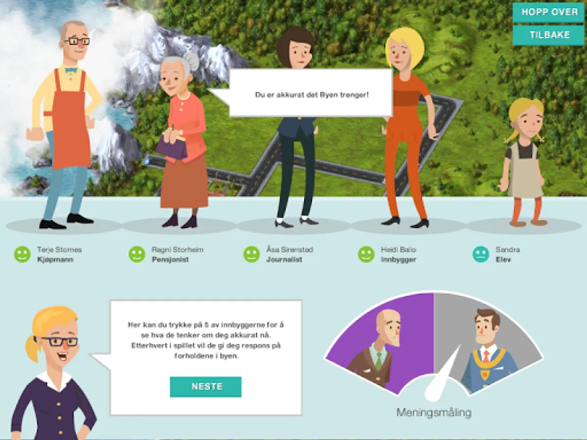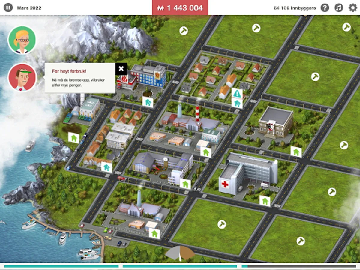 "Byen" is an educational game about community and taxes and is made primarily for use in Norwegian schools.