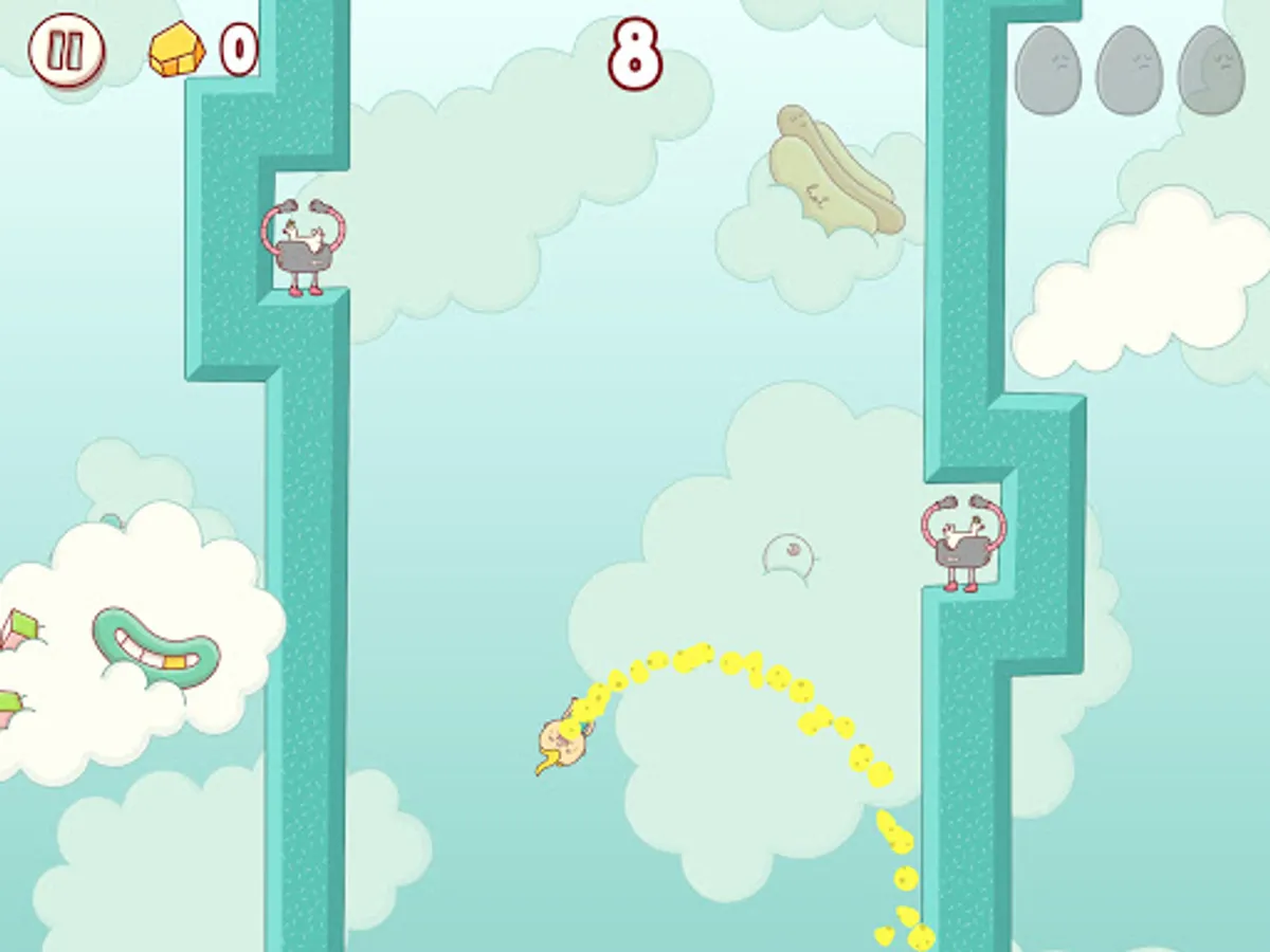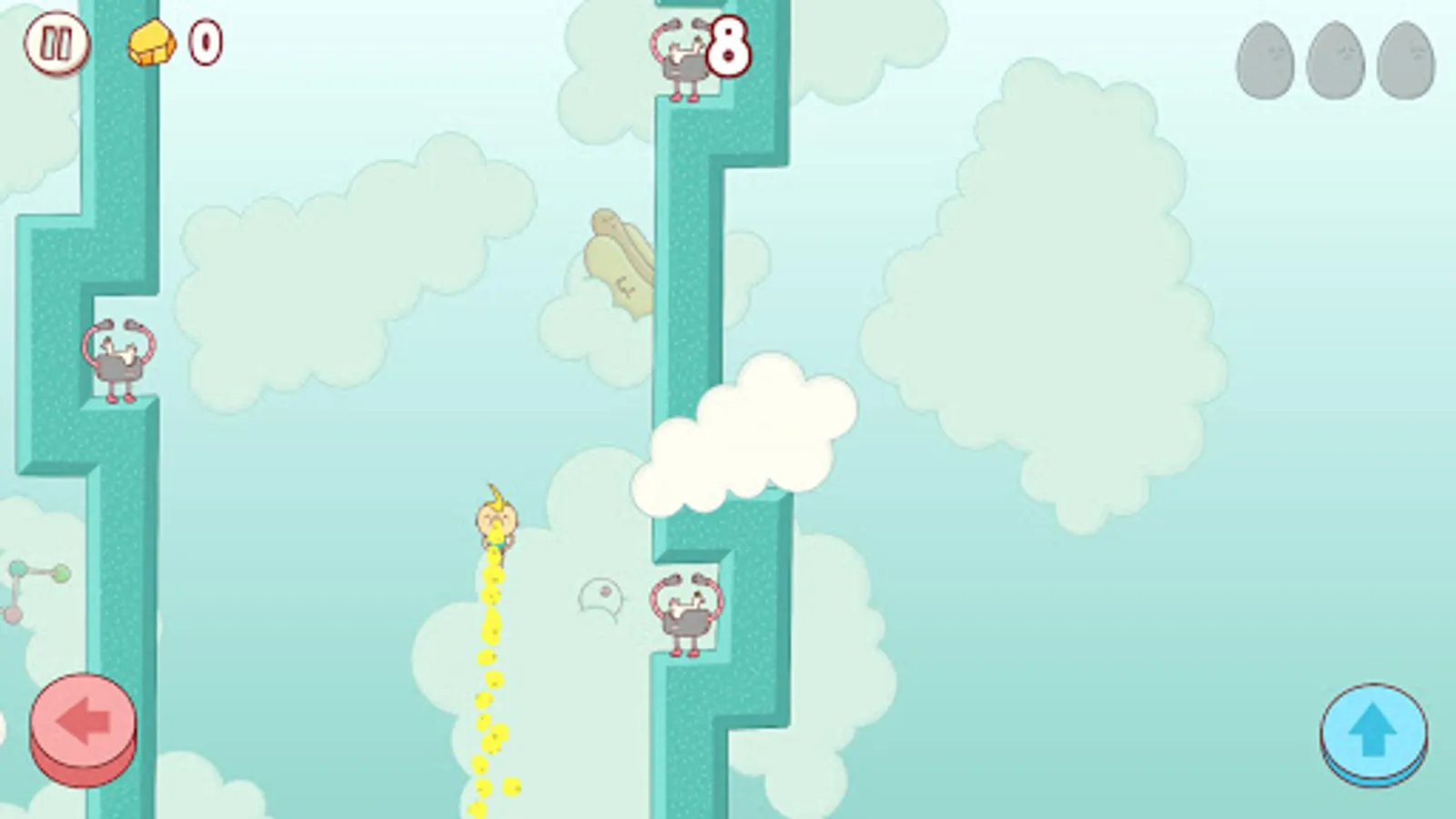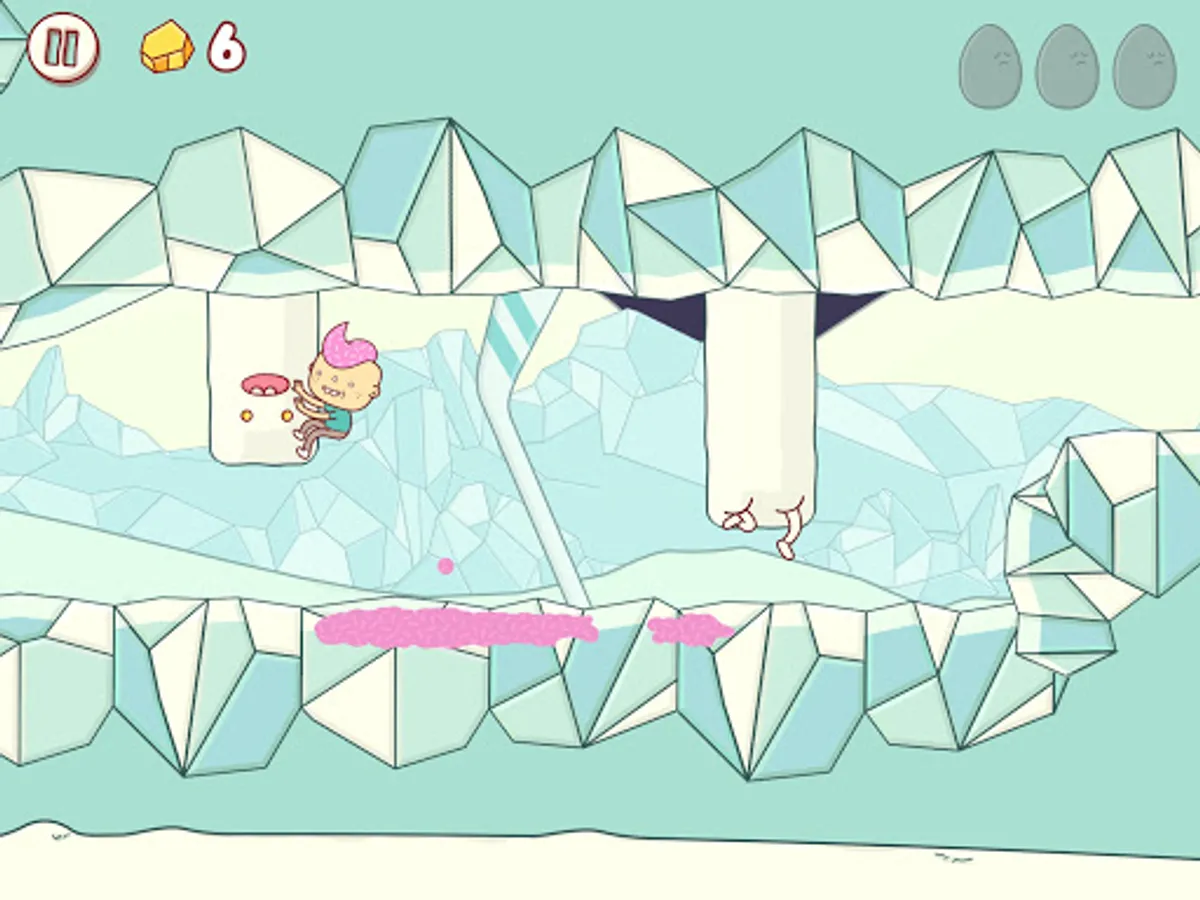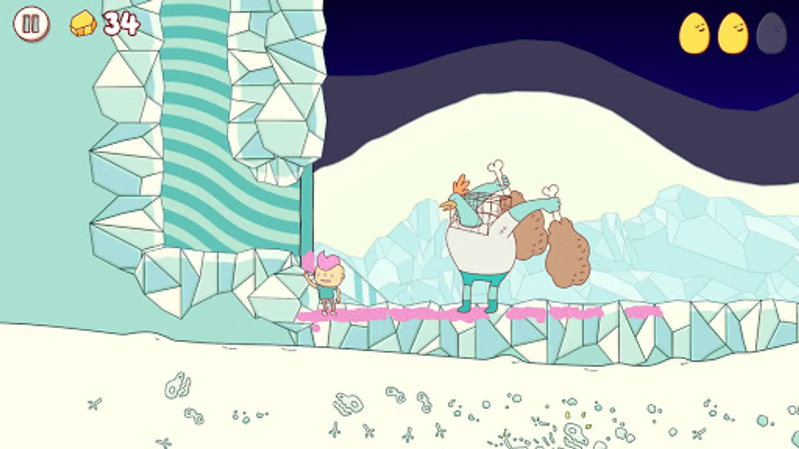 Eggggg is a ridiculous two-button platform game where you propel yourself around using your vomiting superpowers. Gilbert has an extreme allergy to eggs, and eating them will literally make him vomit like a fountain. He escapes from his mean Aunt Doris in order to get to a birthday party, and needs to use his vomiting superpower to survive in a world of angry cyborg chickens... of course.