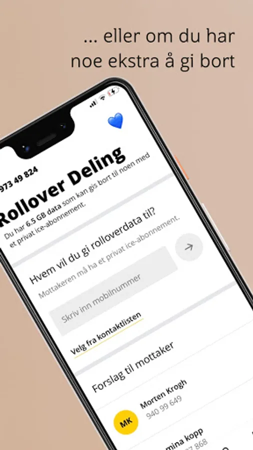 • Do you have a lot of rollover data to spare? Give it away to family or friends with ice-subscription (not bedriftsabonnnement).
