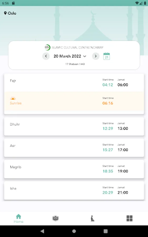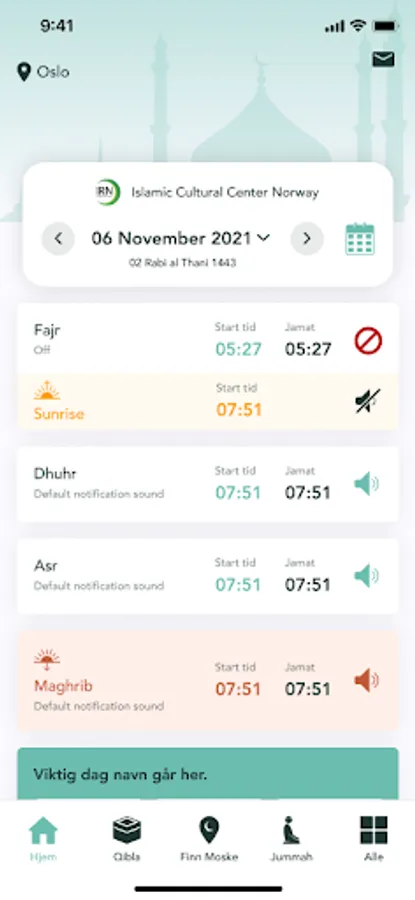 * A standardized table for the whole of Norway, now you do not have to find and compare different prayer timetables