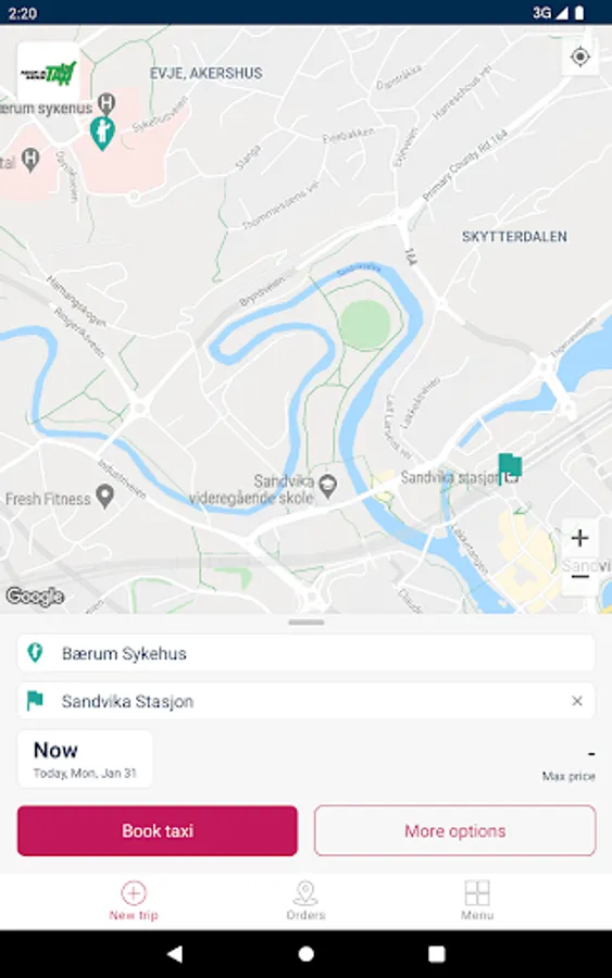 Asker og Bærum Taxi has a number of useful features for quick and easy taxi booking: