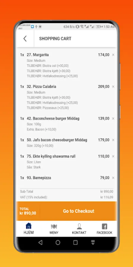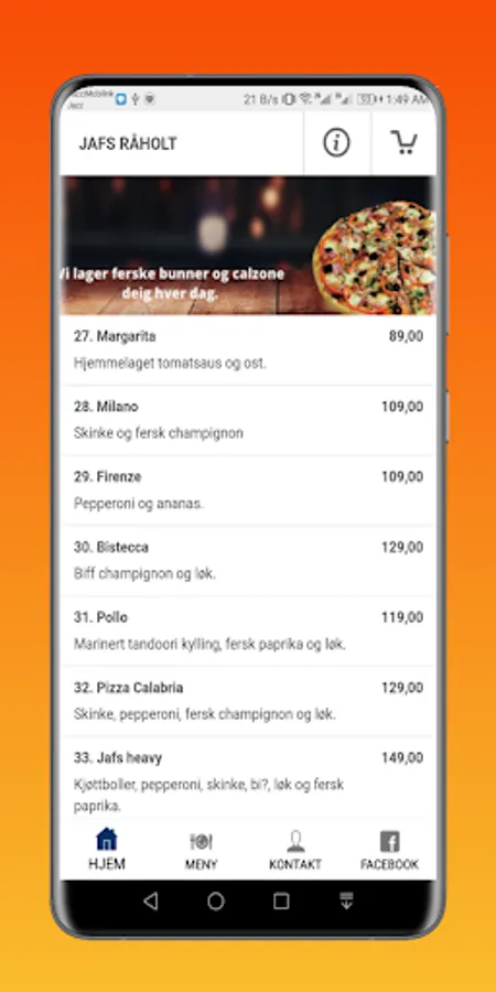 Alle råvarer er ferske og serveres med hjemmelaget brød.
