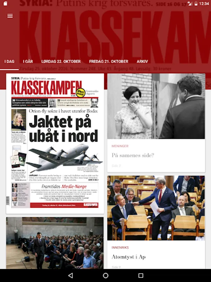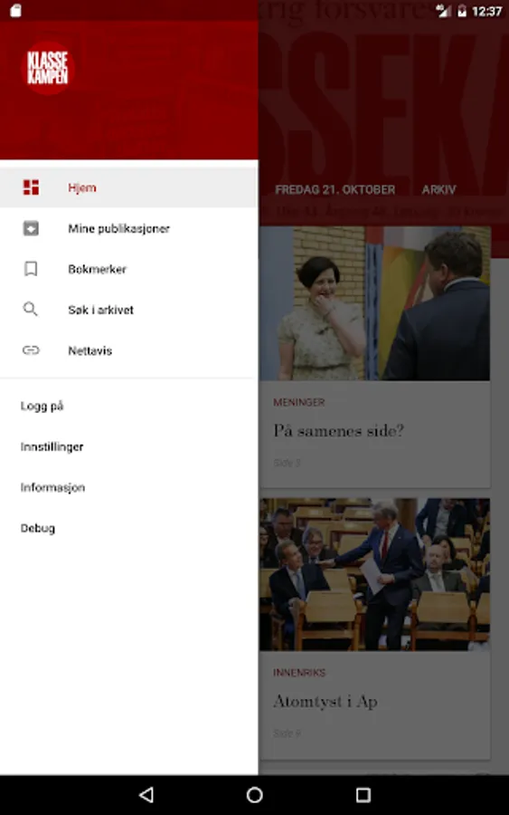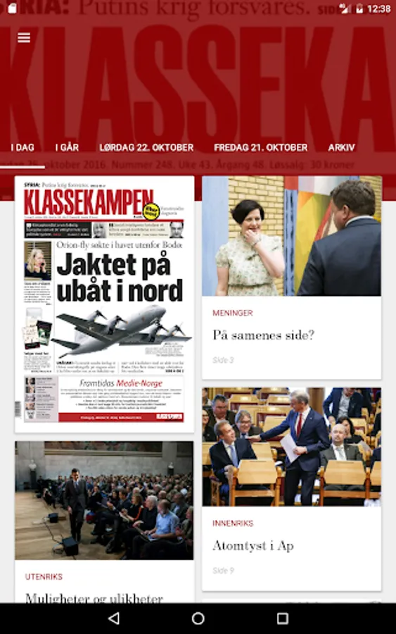 With Klassekampen's e-newspaper, you always have a digital edition of today's paper newspaper available.