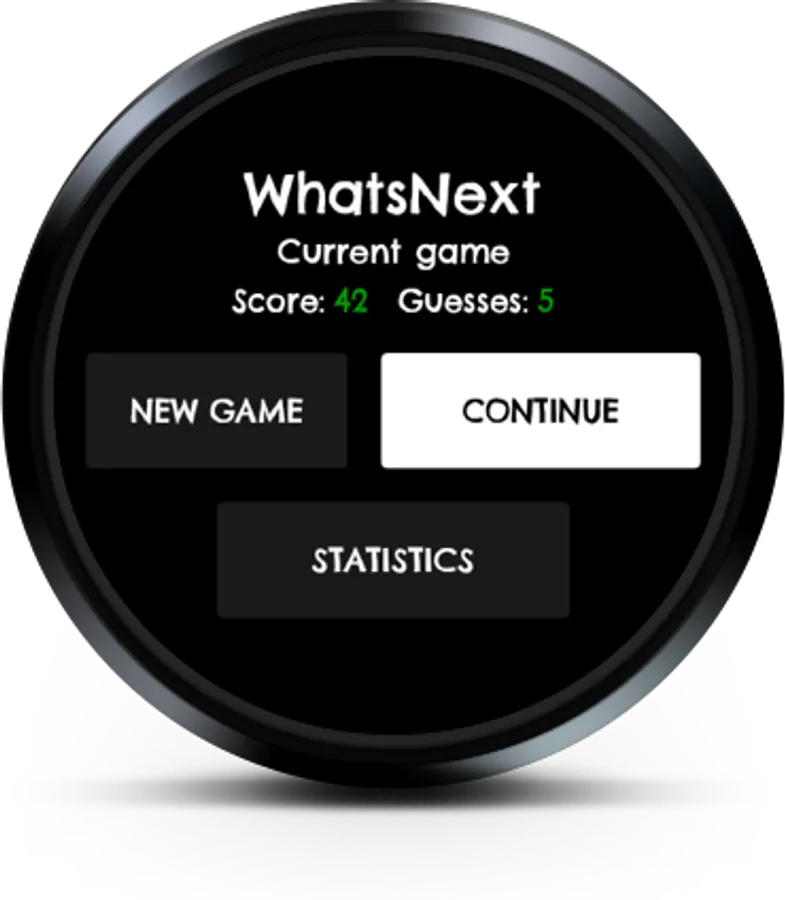 WhatsNext is a free casual Android Wear game to play on your wrist whenever you feel like it. It's a game of gambling and luck where you are presented with a number from 1 to 9 and have to guess if the upcoming number is higher lower than the one on the screen. Your progress is saved between sessions so you can easily pick it up again and play on whenever you have the time. Detailed statistics lets you compare how well you are doing with your friends.