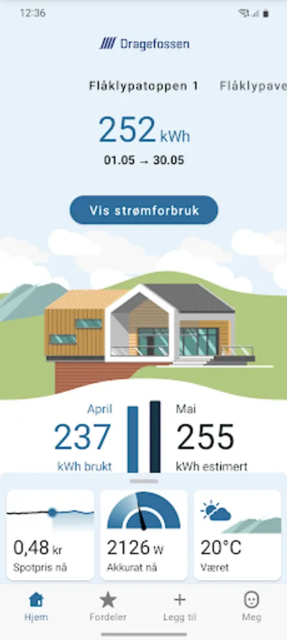 We are constantly working to develop the Dragefossen app so that you have access to smart services that give you an overview of your electricity consumption.
