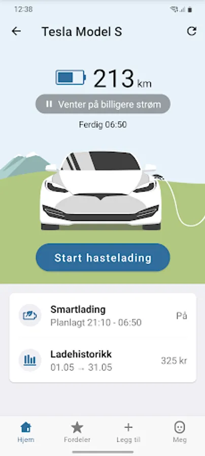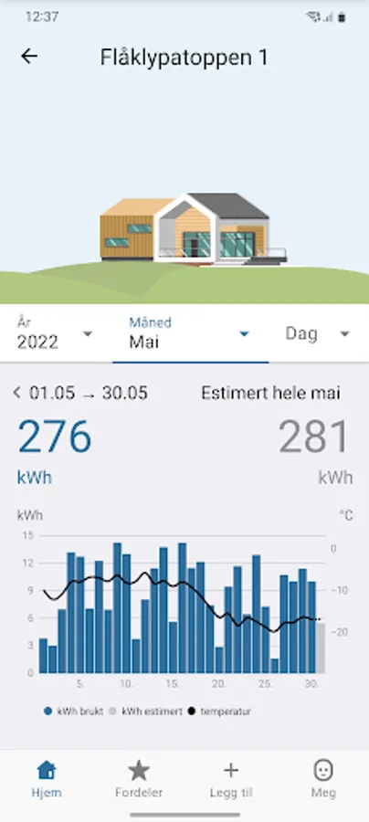 Download the Dragefossen app and get control and an overview of your electricity consumption. With the app, you can charge the electric car when electricity is cheapest, connect smart products and see what effect season, weather, weekends and holidays have on your electricity consumption.