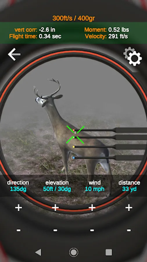 -Visual ballistics with realistic animals, adjustable scope and predefined ammunition.