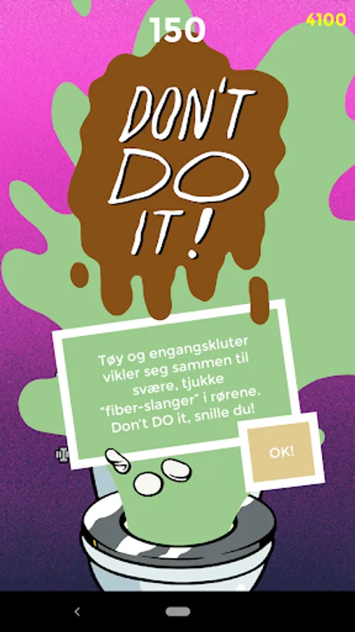 Only three things should i do. Dopapir is the one. Do you know what the other two are? Play Do not do it and see how things are with your dovettet. You get points for every thing you throw right. Throwing something in the bathroom which should not be there, the game is lost.