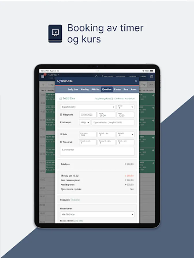 Register students, set up courses, driving lessons and much more with the TABS Skole app.