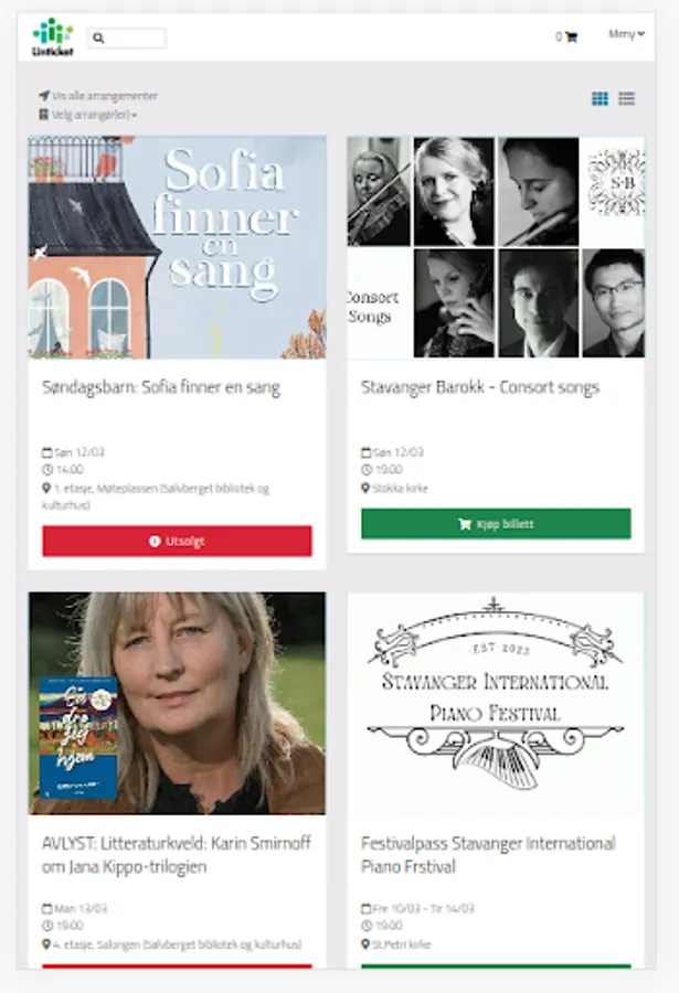 See what's happening at your favorite places, and buy tickets or goods directly with card, Vipps or SMS. Show the ticket at the door, ready for scanning.