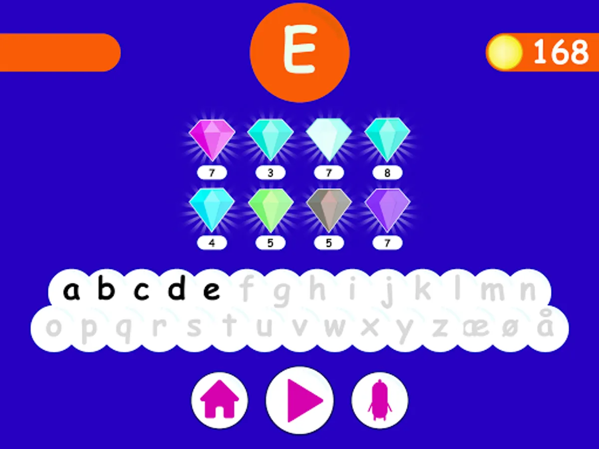 In menu you can choose to practice the letters in regular alphabetical order or in silo rema-order. Silo Rema order is frequently the progression used in the first bokstavinnlæringen school. It is also possible to adjust the speed of the game based on the child's needs.