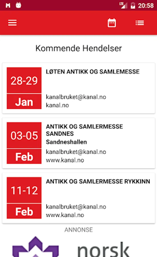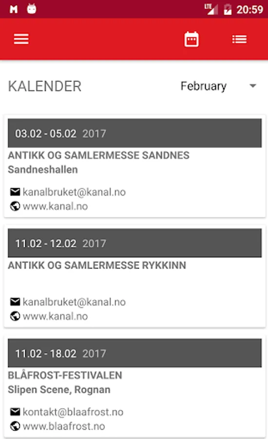 If you have tips about new arrangements, please contact us on markedsboka@gmail.com.