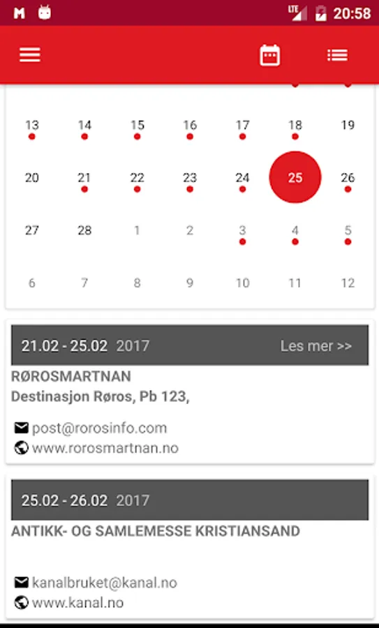 Criterias for listing is that the arrangement have a spesific time and date, and that there are contacts to handlel enqueries.